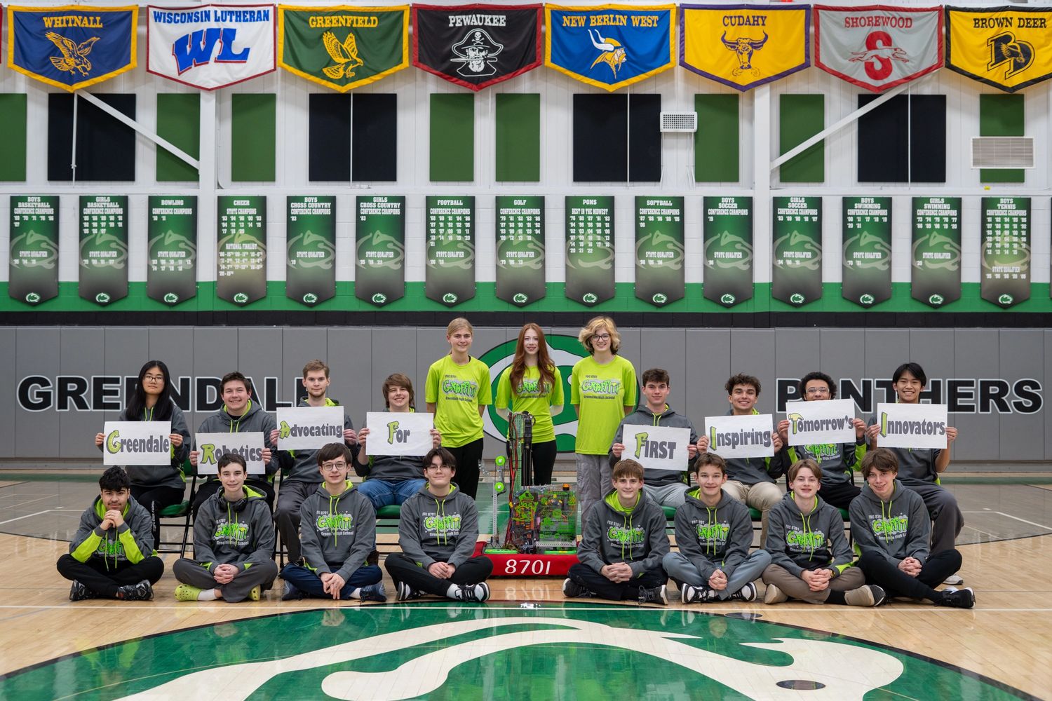 GHS Robotics connects students to a global FIRST robotics community with participants in 110 countries. In addition, GHS robotics students and mentors work to help support FIRST robotics and STEM programs in the Greendale community and beyond.